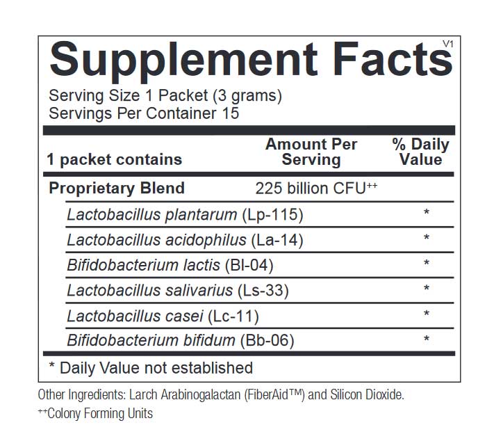 FlorAssentials 225 is a maximum-strength probiotic for cases of acute gastrointestinal (GI) and immune challenges. Going beyond the threshold of traditional probiotic support, high-dose probiotics influence gut health and immunity in ways lower-dose probiotics cannot. Shown to activate over 1,700 genes involved in immune and inflammatory signaling, high-dose probiotics support a healthy, balanced immune response. Delivering 225 billion active probiotic cultures per packet, FlorAssentials 225 creates a rapid response to reset the immune system and maintain normal inflammatory balance. Each convenient, single serving packet provides six proven strains chosen for their ability to survive the harsh GI environment and deliver superior results.